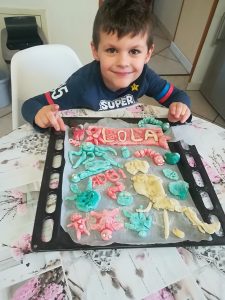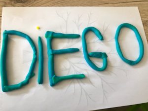 Aujourd’hui, nous allons entraîner vos enfants à apprendre et/ou à réviser les lettres majuscules scriptes, via de la pâte à sel ou de la pâte à modeler, grâce à une idée de Robin et de sa maman. Merci à eux pour l’idée !