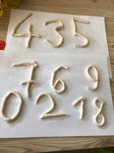 Je vous invite à utiliser votre pâte à sel fraîchement préparée pour fabriquer des lettres de l’alphabet, en majuscule scripte.